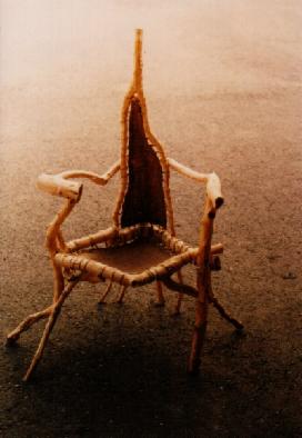 Stuhlobjekt 1983 Buche , Leder , Leinöl Stuhlbauaktion 1988 Akazienäste ,Sackleinen
