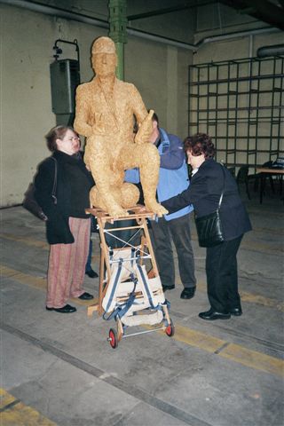 Ausstellung des Schlachtenbummler I Okt. 2008 in der historischen Werkshalle der Schoeller Eitorf AG,Foto Benoit Tremsal. Der Kunsthandlungsauftritt EM 08 mit der Skulptur Schlachtenbummler I fand in Zürich und Wien im Juni 2008 statt.